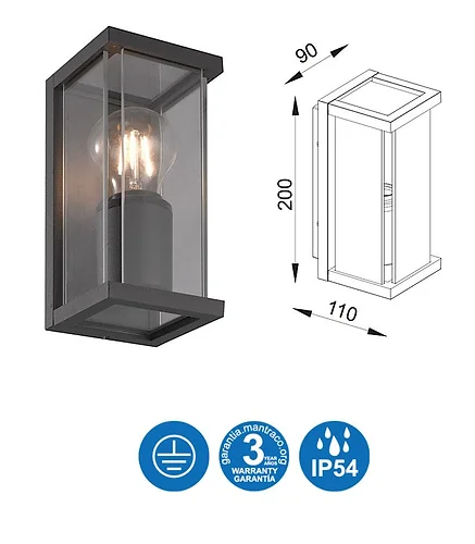 SOBREMURO GRIS OSCURO 1L, ALUMINIO Y CRISTAL, IP 54, 350X140X140