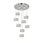 Colgante con 2 luces LED redondas, base rectangular con luz LED incorporada y difusores acristalados. Fabricado con acero inoxidable y cristales K5. Disponible en 4000ºK. La longitud de cada uno de los cables es ajustable de forma independiente al resto.