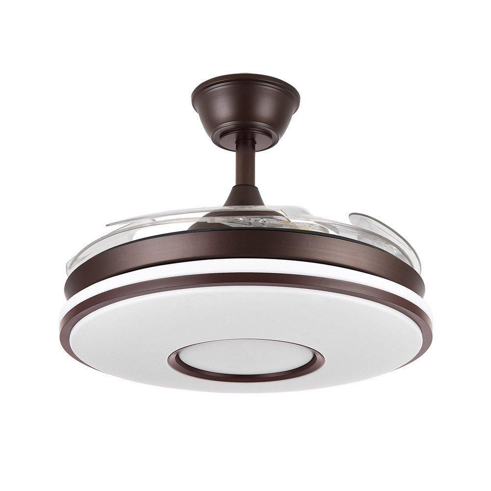 Ventilador Dc Dani 107CM MARRON realizado en metal, policarbonato, en color MARRON con cuatro aspas DESPLEGABLES de ABS transparente muy resistentes. Tiene seis velocidades ajustables. Motor DC. Tecnología LED integrada con una potencia de 59W, con 3 TEMPERATURAS SELECCIONABLES DE LUZ (3000-4000-6000K) luz cálida, natural y blanco frío, y 6980 lúmenes. Control de aire verano o invierno. Su medida es de 34,5/42X50 centímetros con las aspas plegadas y de 34,5/42X107 centímetros con las aspas desplegadas. Incluye dos tijas de 12,5 y 20 centímetros, para instalar a distintas alturas. Mando a distancia INCLUIDO, REGULABLE EN INTENSIDAD, con MEMORIA DE COLOR incorporada y TEMPORIZADOR 2/4 H. Modelo disponible en color cuero, blanco, negro, marrón y níquel, además de en dos tamaños diferentes.